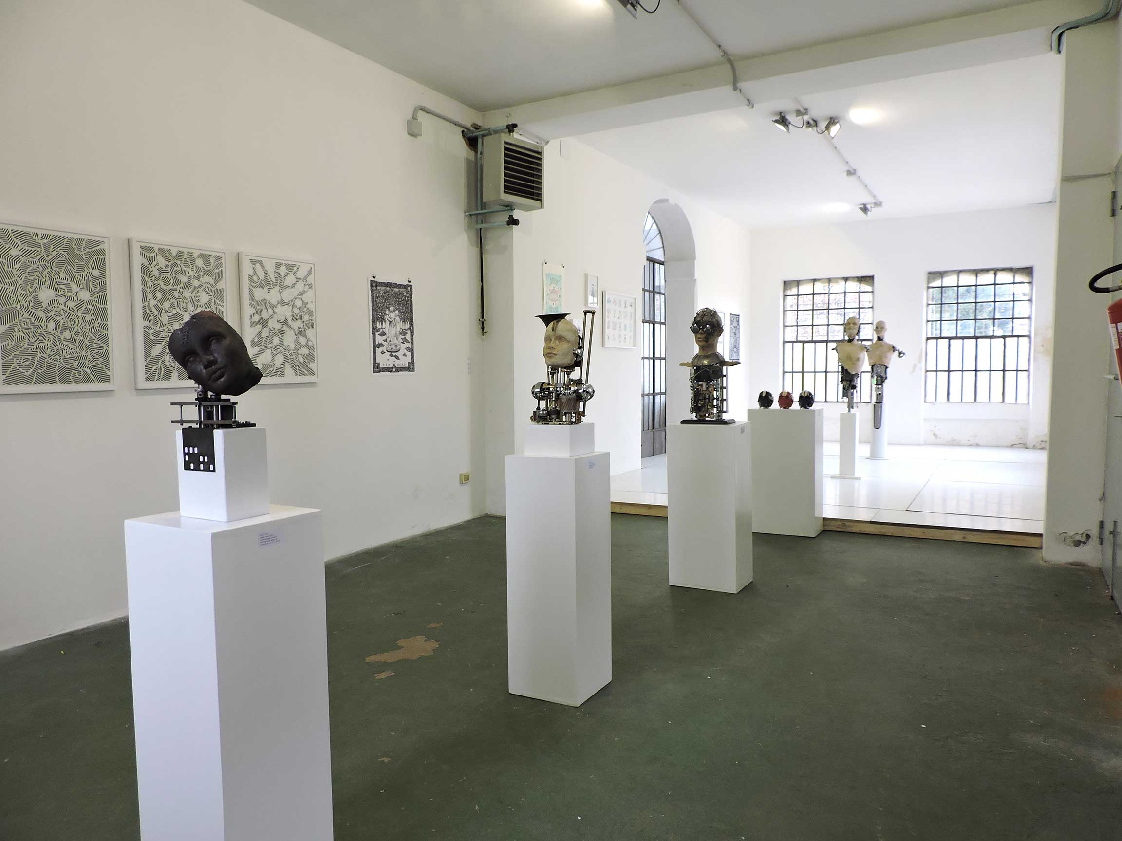 Exhibited photographs of Giovanni Oscar Urso; The metallurgical and conceptual games of Fausto Trevisan; The sculptures of humanoid hybrids by Franz Chi's bionic-mechanical faces.